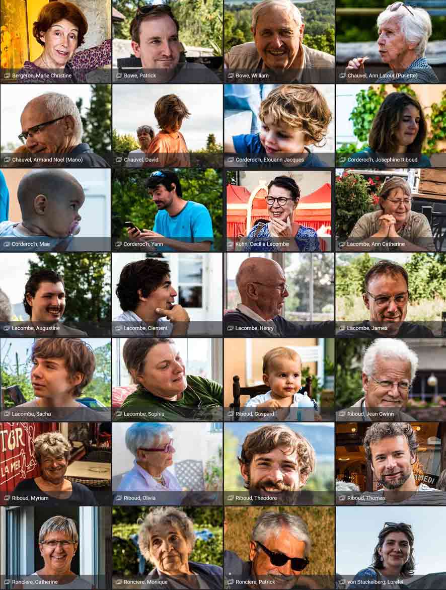 Comme il fallait s’y attendre pour une visite familiale, la meilleure partie du voyage pour Pat et moi a été de rencontrer de nouveaux membres de la famille, de renouer avec les plus anciens et d’échanger tous les petits détails de la vie familiale et les potins qui font que les familles sont des familles. Ce sont les personnes présentes à un moment ou à un autre lors de nos rassemblements, notamment ceux de Chindrieux Sur la terrasse de la Nouvelle Maison, et Sur le Porche de la Vieille Maison :